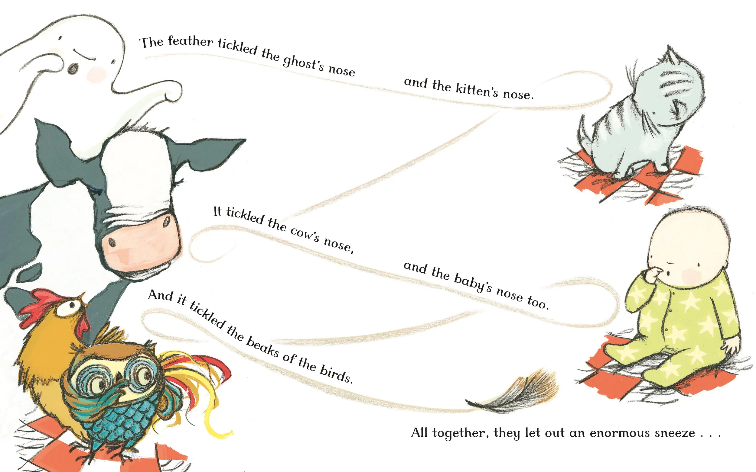 One night, a little ghost glides into Lydia Lou's room to scare her. But no matter how hard he tries, he just can't wake her up. He thinks perhaps some of his noisy animal friends could help but they have no luck either. Not even a noisy baby will do the trick!